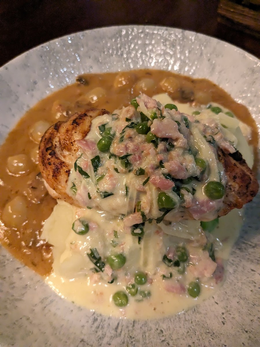 Amazing tasty food, sauces were bursting with flavour !! Venison pappardelle and pan roast chicken breast, bacon, mushrooms and pearl onions in a creamy mead sauce, with spring onion mash . Good size portions . Will definitely return .